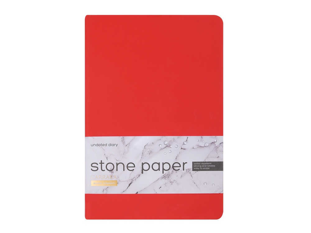 Уникальность недатированного ежедневника Carrara от Bruno Visconti — в его блоке. Он изготовлен из каменной бумаги плотностью 144 г/кв.м, отличающейся особой гладкостью и повышенной прочностью. Она не боится воды и пролитого кофе, достаточно просто протереть сухой салфеткой.