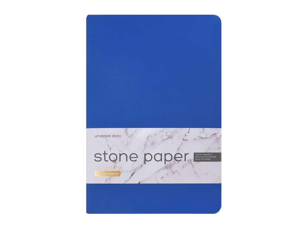 Уникальность недатированного ежедневника Carrara от Bruno Visconti — в его блоке. Он изготовлен из каменной бумаги плотностью 144 г/кв.м, отличающейся особой гладкостью и повышенной прочностью. Она не боится воды и пролитого кофе, достаточно просто протереть сухой салфеткой.
