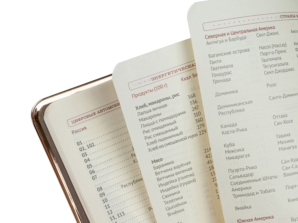 В ежедневнике Chelsea есть полезная справочная информация и телефонная книга, а также 272 страницы для записи идей, мыслей и составления рабочих планов. Есть закладка - тесьма из шелка, она интегрирована в обложку и может использоваться как хлястик. Для изготовления страниц используется качественный бежевый офсет повышенной плотности (70 г/кв м), которая производится в Японии и подходит для всех видов чернил. Бордовое ляссе, совпадающее по цвету с капталом, служит для удобного перехода к текущей дате.