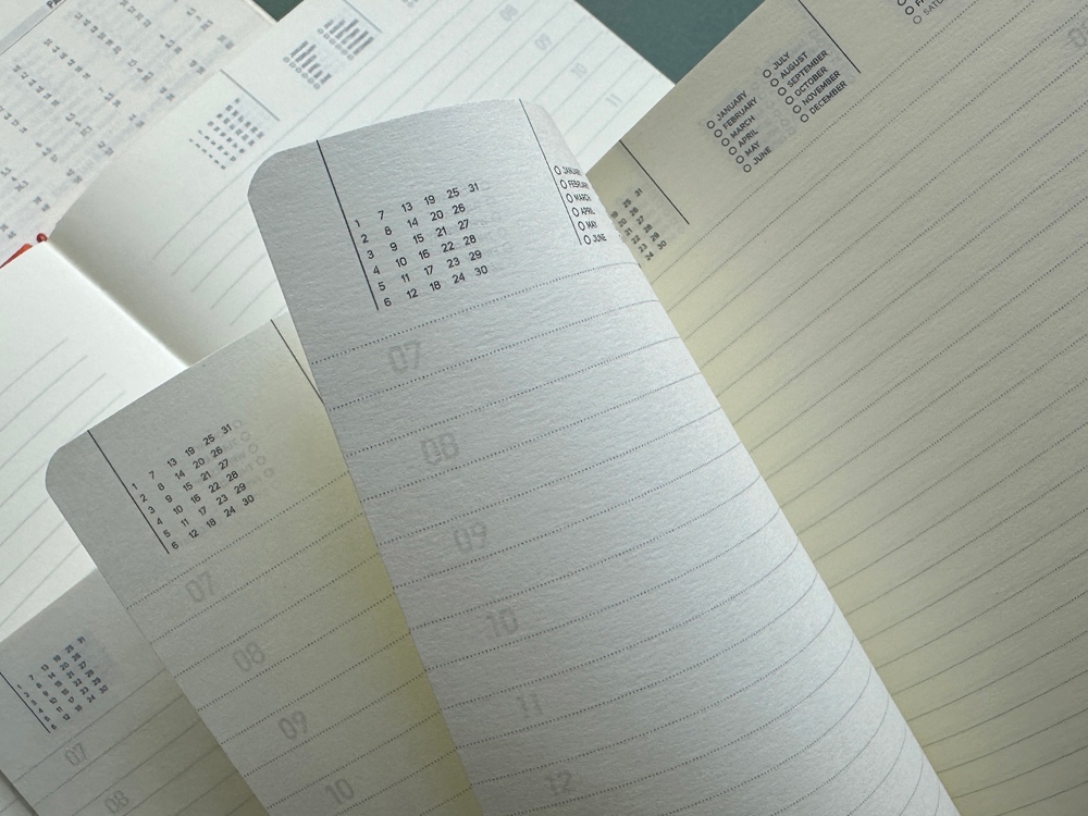 Внутренний блок ежедневника содержит справочную информацию и блок для ежедневного планирования в линейку с указанием времени суток (интервал в один час). Блок изготовлен из бежевой бумаги плотностью 70 г/кв.м.