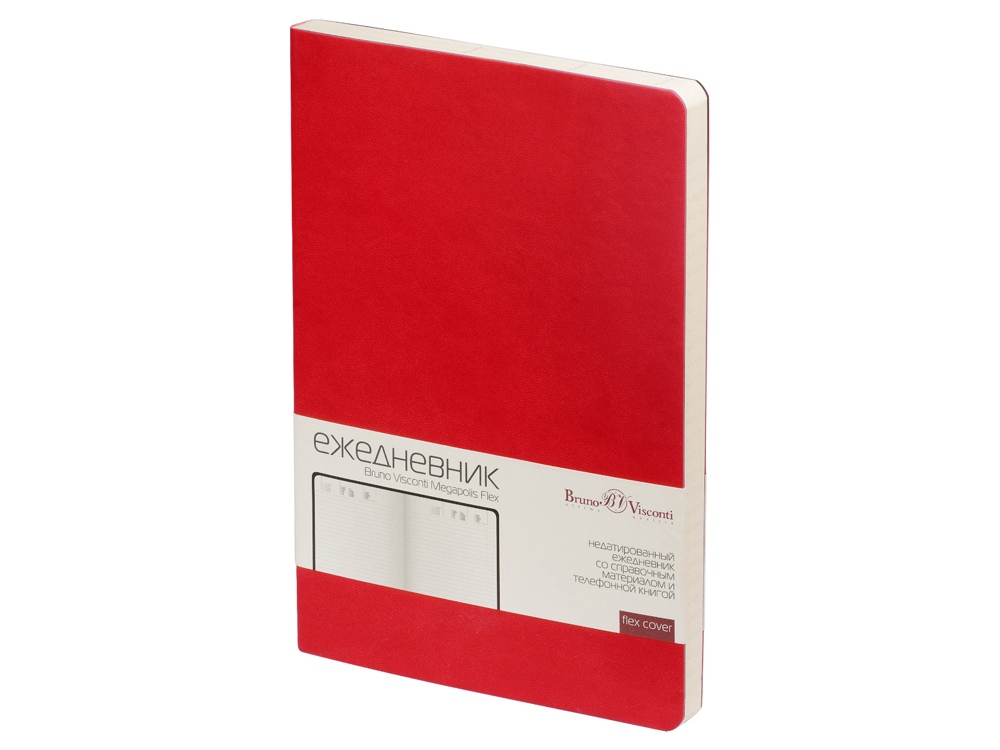 Недатированный ежедневник Megapolis Flex от бренда Bruno Visconti - это качественный корпоративный подарок по выгодной цене, произведенный специально под персонализацию. Представлен в универсальном формате А5 и состоит из 272 страниц. Элегантная закругленная flex обложка из гладкого кожзама имеет гибкую конструкцию и приятна на ощупь. А интегральный переплет позволяет сэкономить место в деловой сумке или портфеле – ежедневник можно просто свернуть в трубку или согнуть пополам.