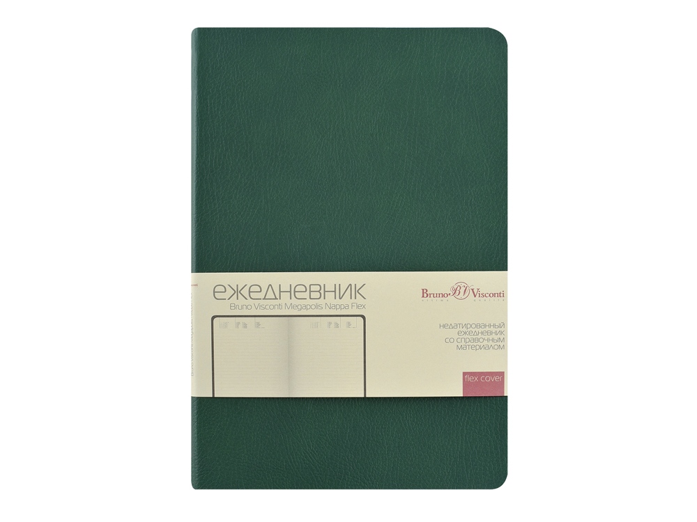 Обложка недатированного ежедневника Megapolis Nappa Flex ТМ Bruno Visconti произведена из искусственной кожи без применения переплетного картона, благодаря чему он легче и изящнее классических. Его можно свернуть в трубочку, обложка и блок не пострадают. При этом, для ежедневника формата А5 доступны те же опции, что и для любых других ежедневников — окрашенный обрез, крупнозернистая фактура искусственной кожи обложки, двойное ляссе 7 мм.