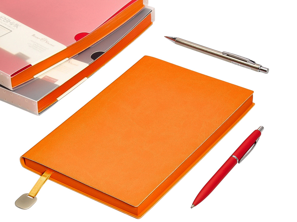 Недатированный ежедневник Mercury от бренда Bruno Visconti - это качественный корпоративный подарок по выгодной цене, произведенный специально под персонализацию. Представлен в современном формате А5. Обложка ежедневника выполнена из современного переплетного материала с двойной закладкой с шильдом. Цветной край блока, а также отделка листов цветными деталями - это переплетение технологических новинок и оригинальных дизайнерских решений.