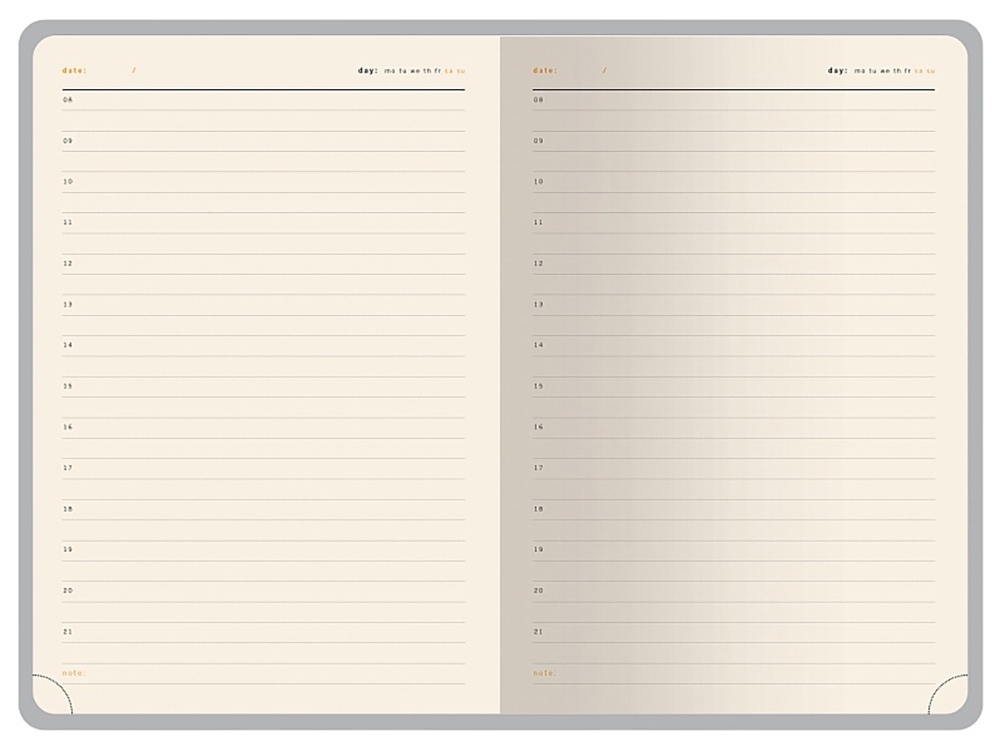 - твердая обложка из высококачественной экокожи с декоративной нитью по периметру в тон ежедневника;