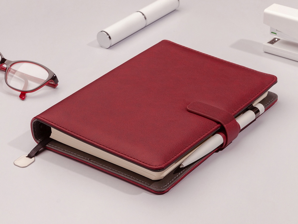 поролонированная обложка из высококачественной экокожи с декоративной нитью по периметру в тон ежедневника;