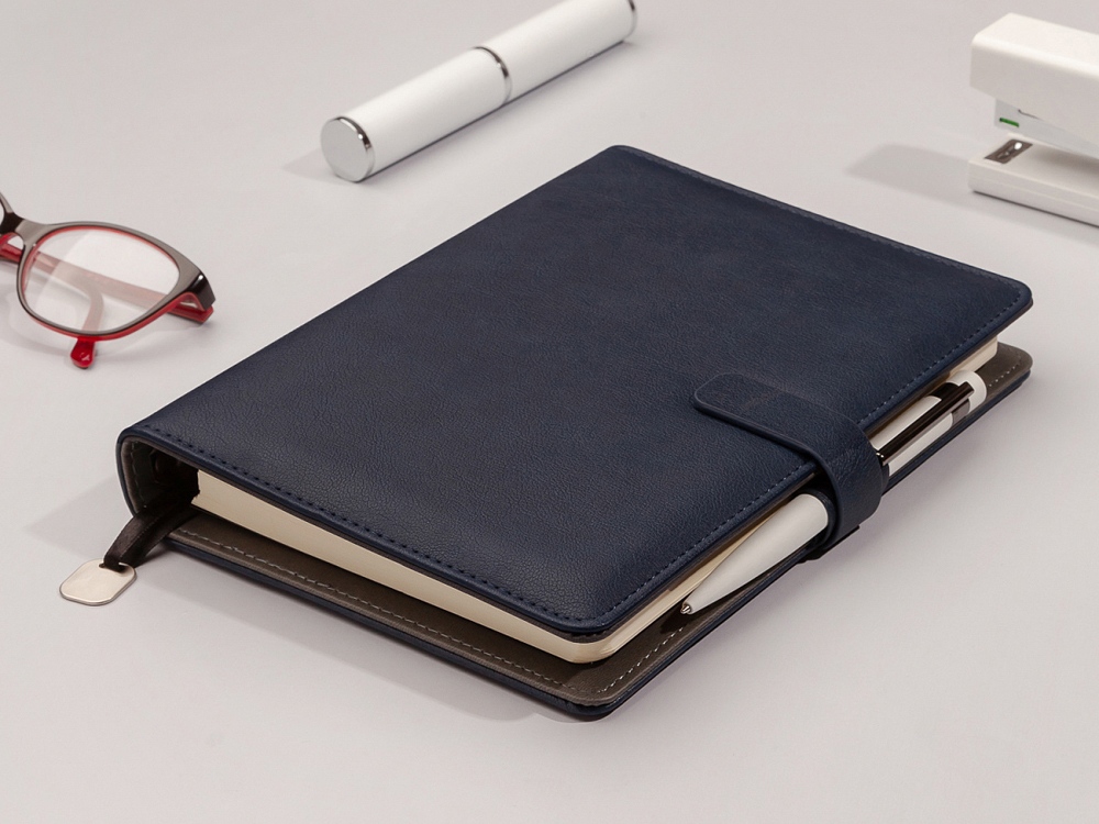 поролонированная обложка из высококачественной экокожи с декоративной нитью по периметру в тон ежедневника;