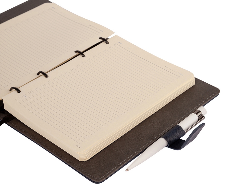 Недатированный ежедневник Toscana от Bruno Visconti на кольцах в твердом переплете – элегантный деловой аксессуар, подчеркивающий статус владельца с продуманным до мелочей функционалом: