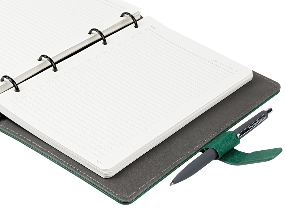 Недатированный ежедневник Toscana от Bruno Visconti на кольцах в твердом переплете – элегантный деловой аксессуар, подчеркивающий статус владельца с продуманным до мелочей функционалом: