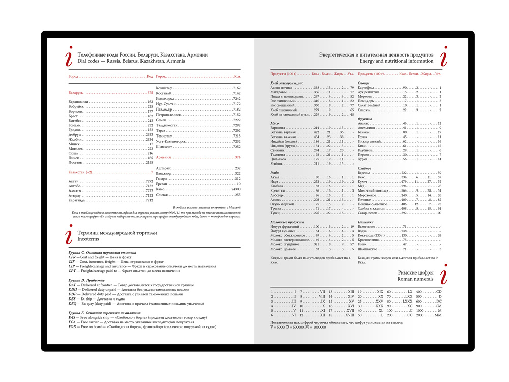 В ежедневнике есть полезная справочная информация и телефонная книга, а также страницы для записи идей, мыслей и составления рабочих планов. Есть перфорация (нижние уголки отрывные). Для изготовления страниц используется качественный бежевый офсет повышенной плотности (80 г/кв м), которая производится японской фирмой Daiwa и подходит для всех видов чернил.