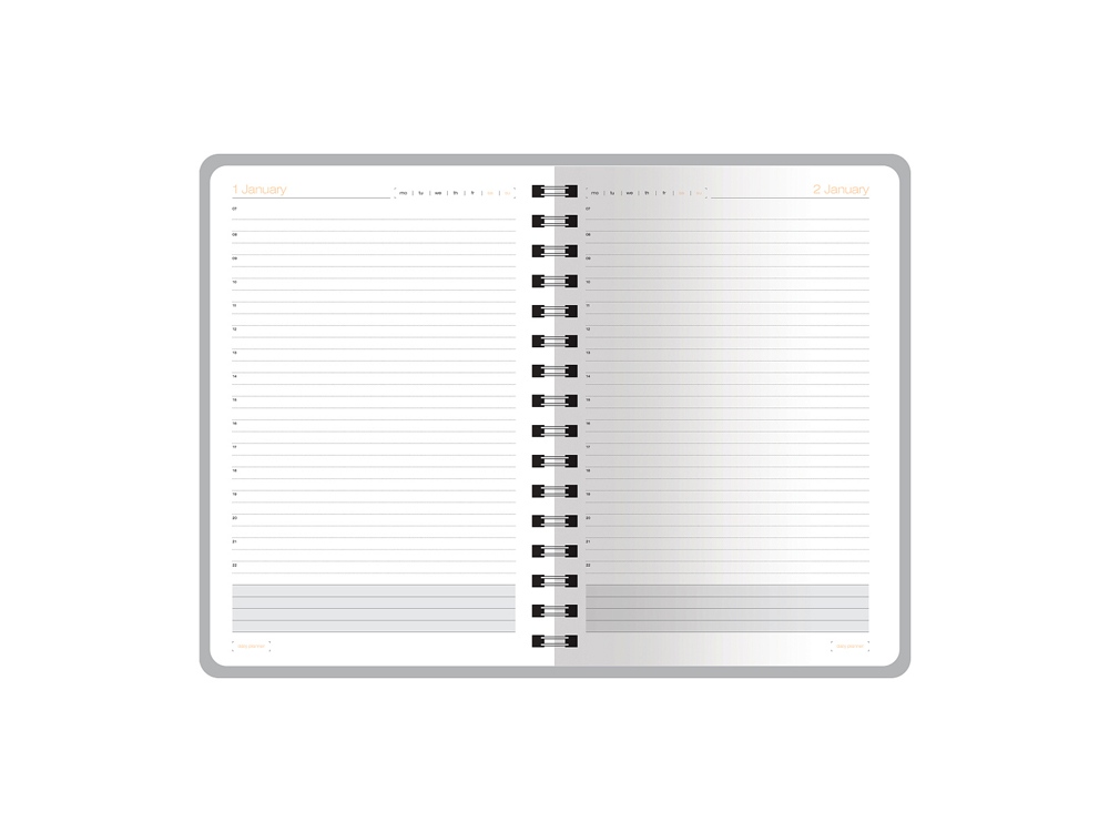 Гибкая (flex) обложка из фактурной высококачественной экокожи, скругленный угол обложки и блока, полускрытый гребень, позволяющий держать ежедневник открытым на столе и работать с комфортом, делая записи, серебряный обрез - все это визитная карточка ежедневника ORBIT от Bruno Visconti.