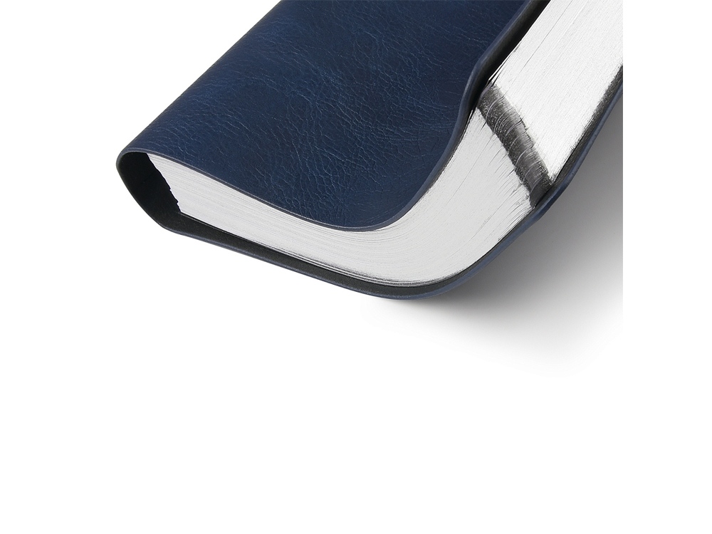 Гибкая (flex) обложка из фактурной высококачественной экокожи, скругленный угол обложки и блока, полускрытый гребень, позволяющий держать ежедневник открытым на столе и работать с комфортом, делая записи, серебряный обрез - все это визитная карточка ежедневника ORBIT от Bruno Visconti.