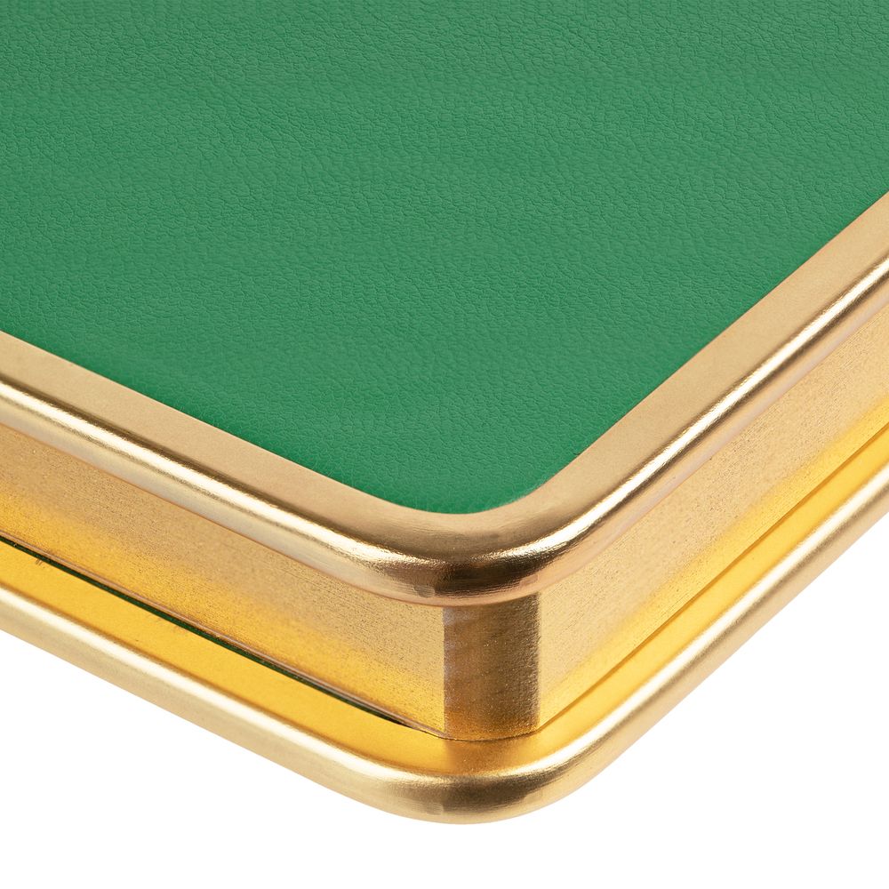 Твердая обложка с металлической окантовкой. Металлизированный обрез блока.