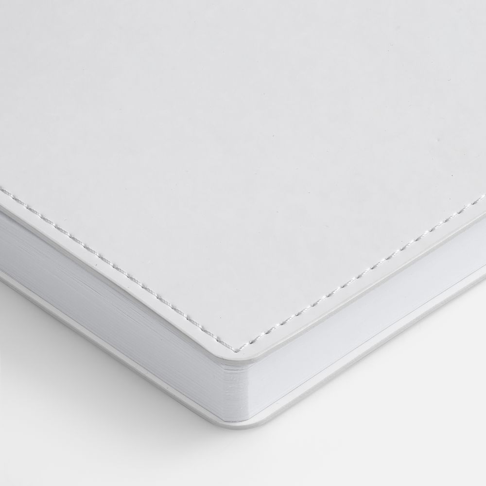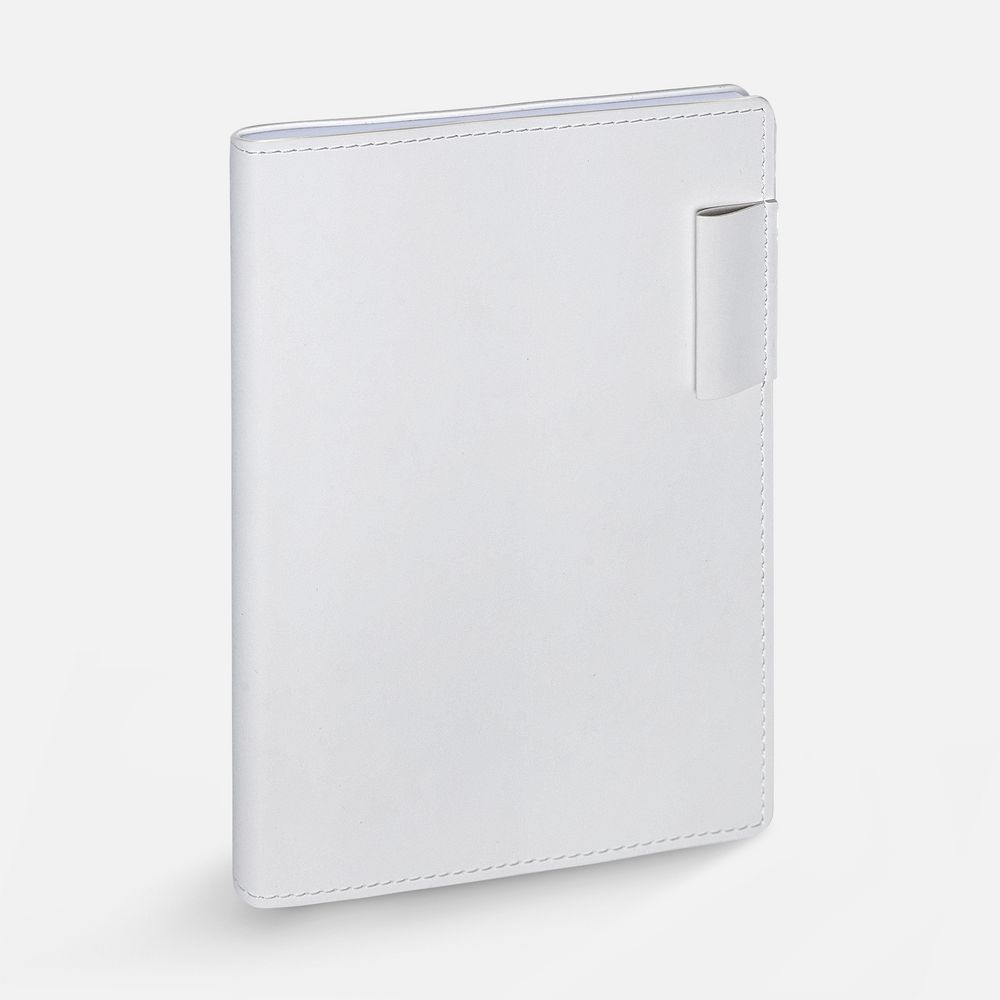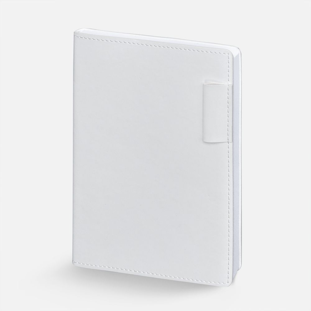 Ежедневник с гибкой обложкой из материала Soft Touch, белый BB, дополнен петелькой из покровного материала для ручки, капталом, ляссе и закрашенным срезом обложки в цвет материала.