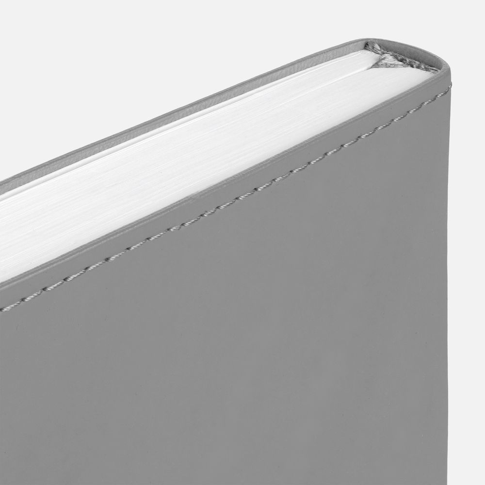 Ежедневник с гибкой обложкой из материала Soft Touch, белый BB, дополнен петелькой из покровного материала для ручки, капталом, ляссе и закрашенным срезом обложки в цвет материала.