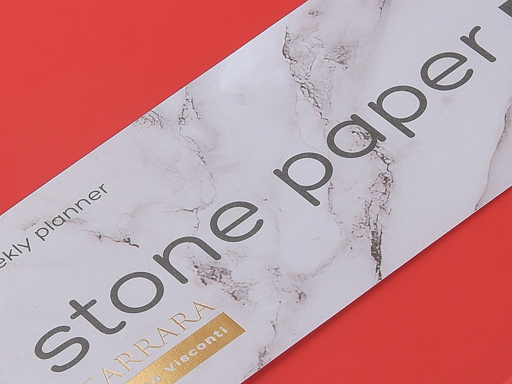 Блок произведен из каменной бумаги плотностью 144 г/кв.м, отличающейся особой гладкостью и повышенной прочностью. Она не боится воды и пролитого кофе, достаточно просто протереть сухой салфеткой.