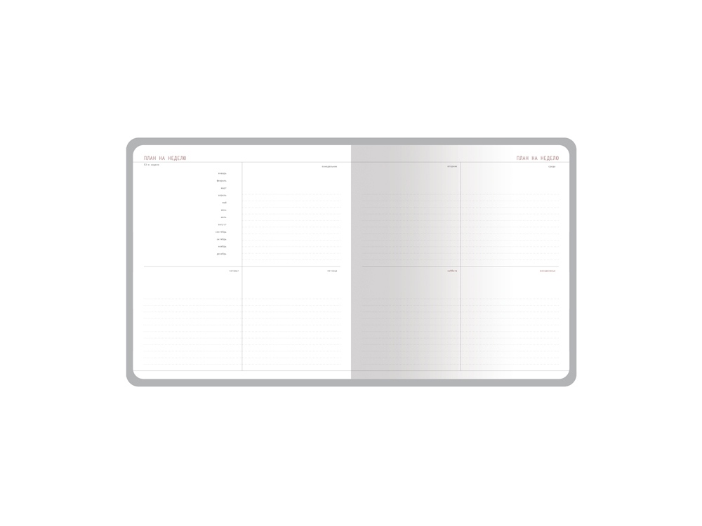 Специально разработанная сетка блока, включает в себя и планер на год, и трендовую справочную информацию, и помесячный развернутый план, и основной блок из плана на неделю. Удобный для еженедельника квадратный формат А5+, обложка из искусственной кожи Soft Touch, блок из каменной бумаги — превосходное предложение!