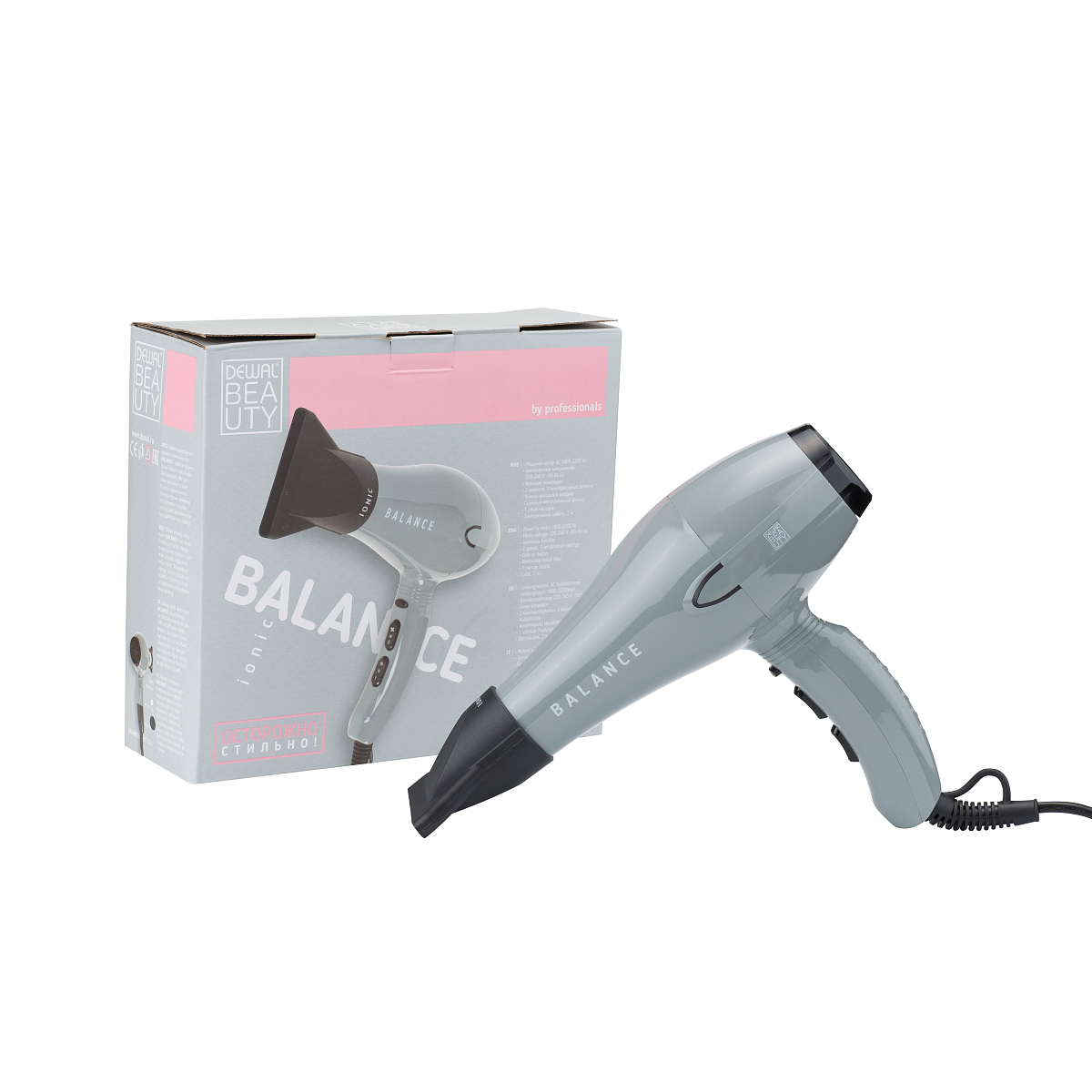 Фен DEWAL BEAUTY Balance Grey, серый, 2200 Вт, ионизация, 1 насадка можно заказать в нашей компании по самой доступной цене от 2 350 рублей.