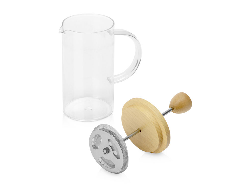 Элегантный френч-пресс с крышкой из букового дерева станет достойным подарком коллегам по работе, партнерам по бизнесу, сотрудникам на корпоративное мероприятие. Его объем рассчитан на одну стандартную кружку или две небольшие кофейные чашки. Френч-пресс идеально подойдет для заваривания не только кофе, а также чая или любых травяных напитков.
