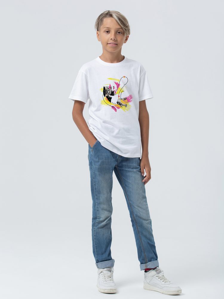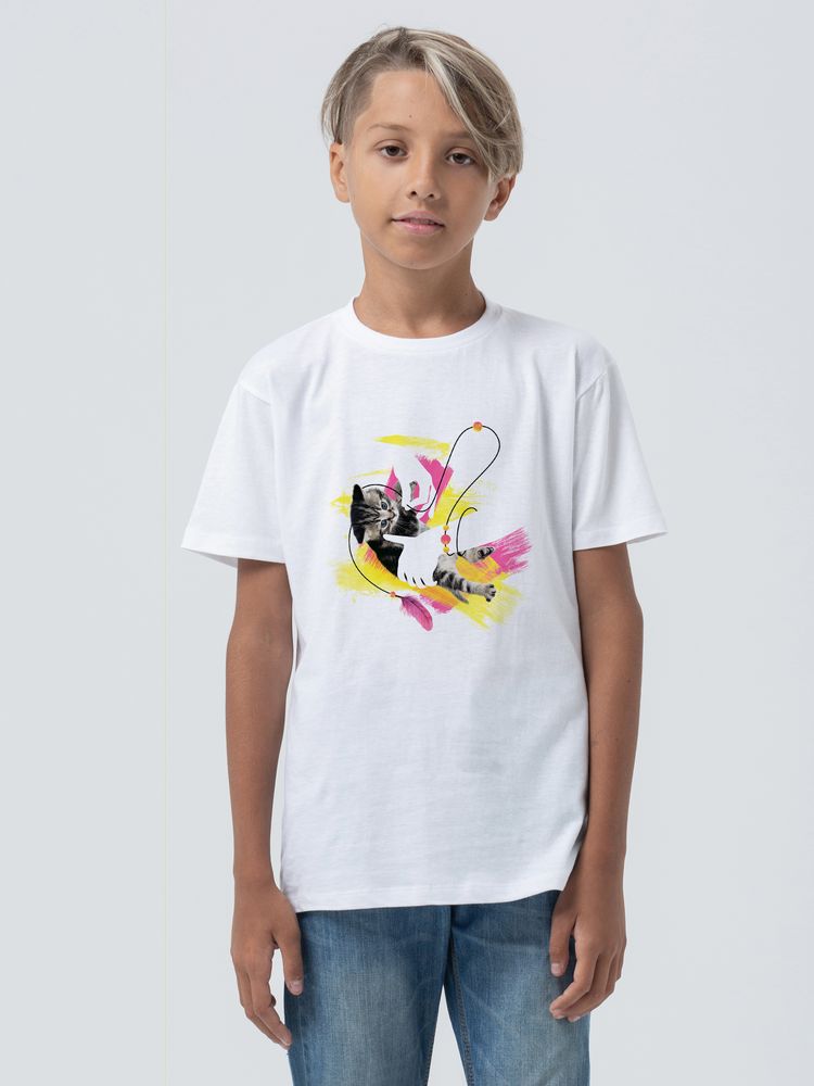 Футболка детская «Обними кота», белая можно заказать в нашей компании по самой доступной цене от 900 рублей.