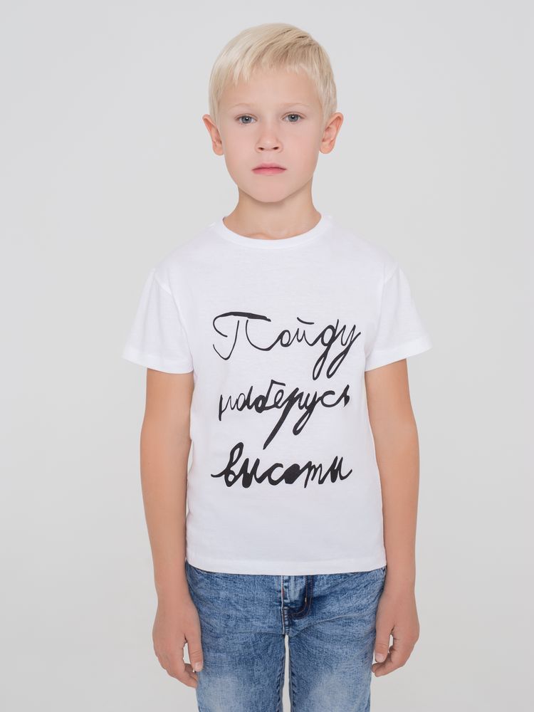 Футболка детская «Пойду наберусь высоты», белая можно заказать в нашей компании по самой доступной цене от 541 рублей.