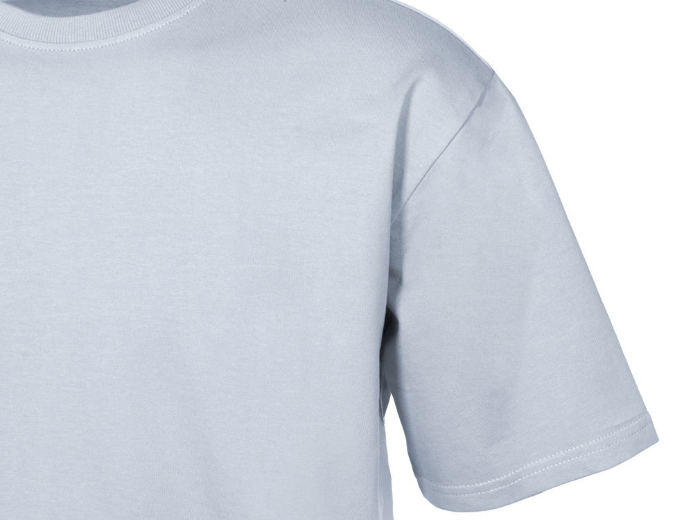 Футболка выполнена из хлопкового френч терри с петельками на изнаночной стороне. Горловина обработана рибом 2х2 и дополнительно усилена тесьмой-елочкой с внутренней стороны спинки. Гладкая поверхность полотна позволяет идеально нанести изображение. Футболка расслабленного силуэта для прогулок и других видов приятного времяпрепровождения