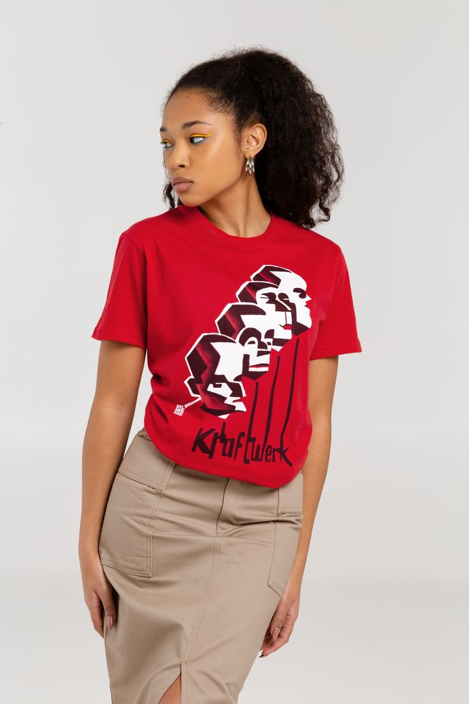 Футболка «Меламед. Kraftwerk», красная можно заказать в нашей компании по самой доступной цене от 977 рублей.