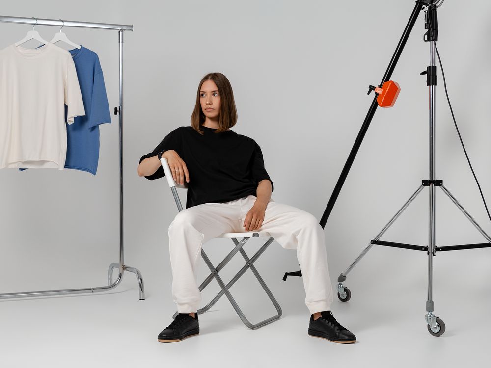 Футболка унисекс оверсайз со спущенным плечом.
