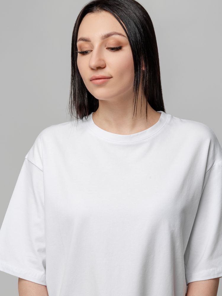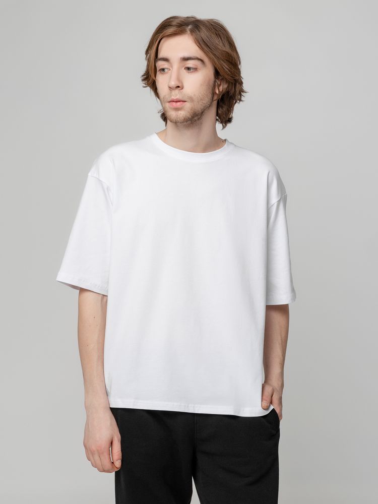Футболка унисекс свободного кроя с боковыми швами. Благодаря тонким и длинным волокнам хлопка ткань футболки отличается гладкостью, ровностью и прочностью, отлично сохраняет форму, не деформируется и не выцветает при стирке.