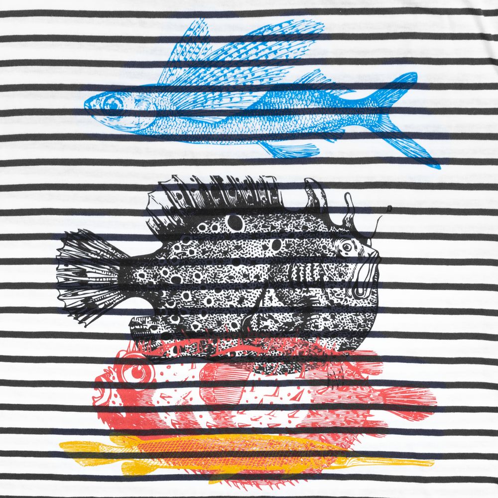 Футболка женская «Морские обитатели», белая с темно-синим можно заказать в нашей компании по самой доступной цене от 2 000 рублей.