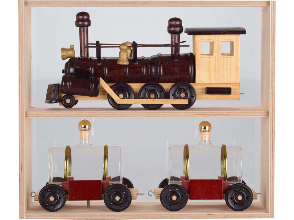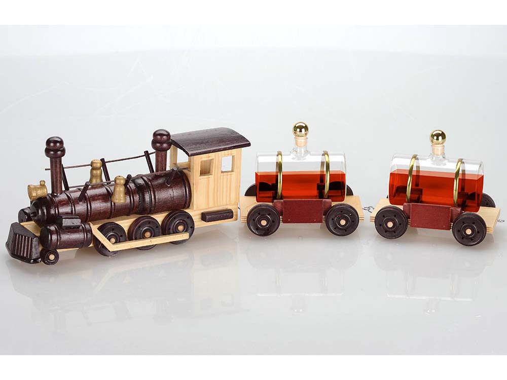Оригинальный подарок для представителей транспортных, логистических и железнодорожных компаний. Графин в форме грузового состава оснащен двумя емкости для виски. Состав выполнен из качественного дерева.