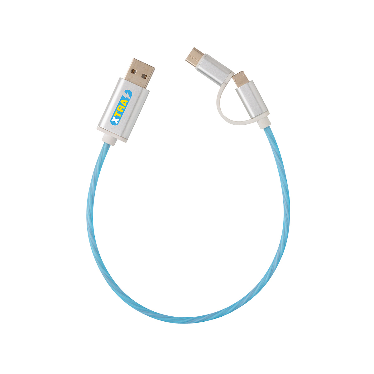 Современный кабель с тремя выходами: Type C и комбинированным разъемом для устройств на платформе iOS и на платформе Android (micro USB). Во время зарядки кабель подсвечивается. Кабель изготовлен из TPE, а разъемы – из прочного алюминия. Подходит для зарядки устройств. Длина: 30 см. Длина 20 см., ширина 1,5 см., высота 1,1 см., диаметр 0 см.