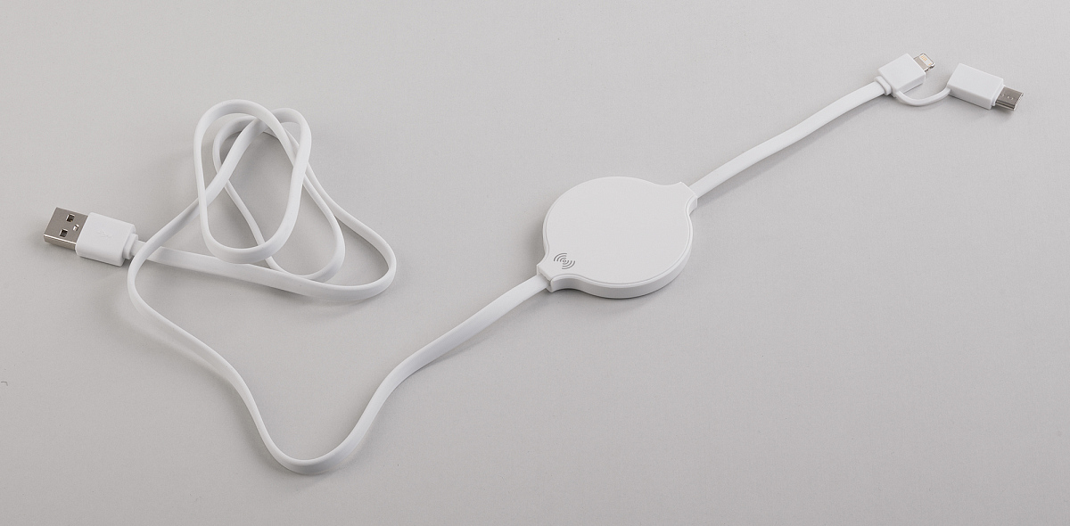 Кабель «Energy» включает в себя компактное беспроводное зарядное устройство. К источнику питания подключается через USB-разъем. Для подключения внешних устройств на обратной стороне расположены выходы с разъемами Type C/lightning/micro USB.