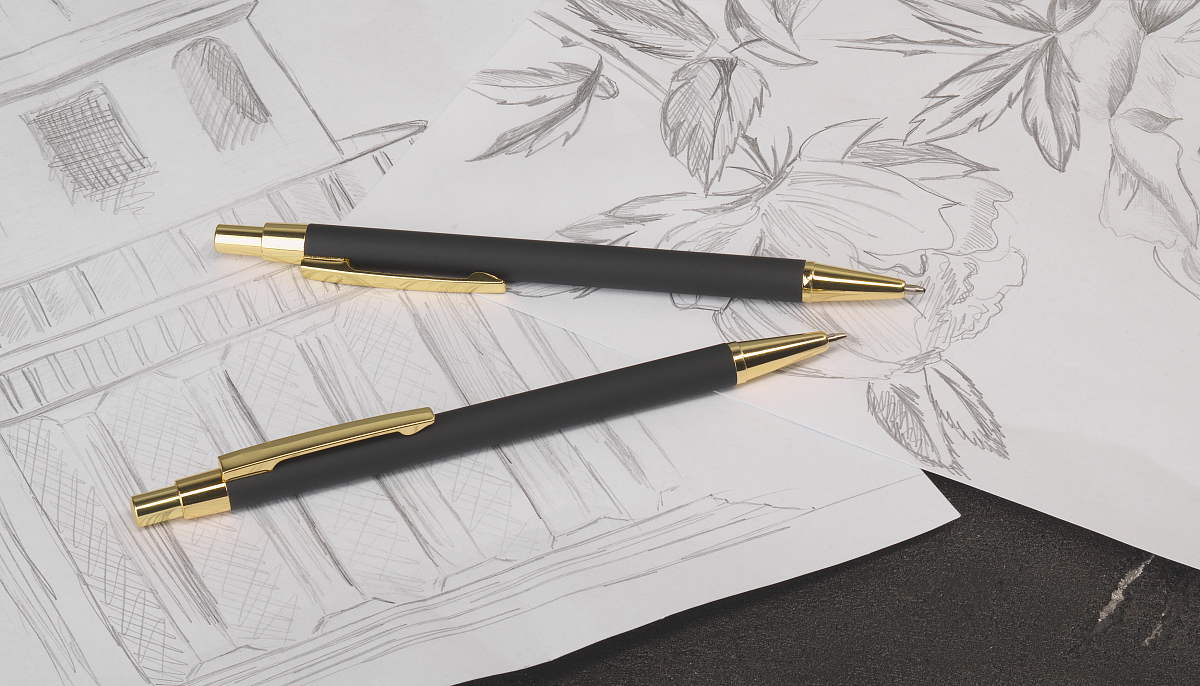 Карандаш механический "Ray", покрытие soft touch, черный с золотом можно заказать в нашей компании по самой доступной цене от 149 рублей.