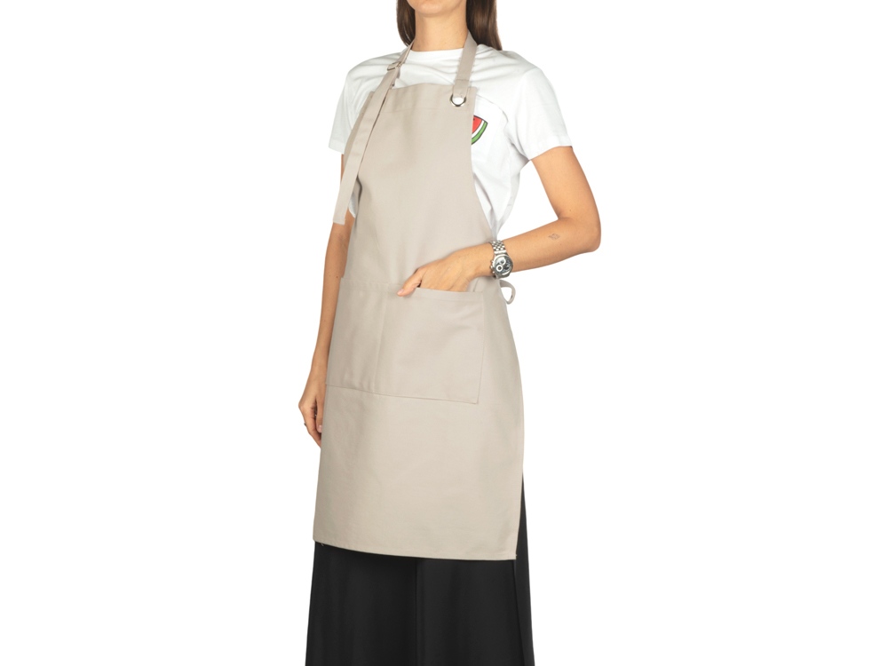 На фартуке имеется кармашек для того, чтобы самые важные кухонные приборы или телефон всегда были под рукой. А с помощью регулируемых завязок на шее, фартук будет сидеть максимально комфортно.
