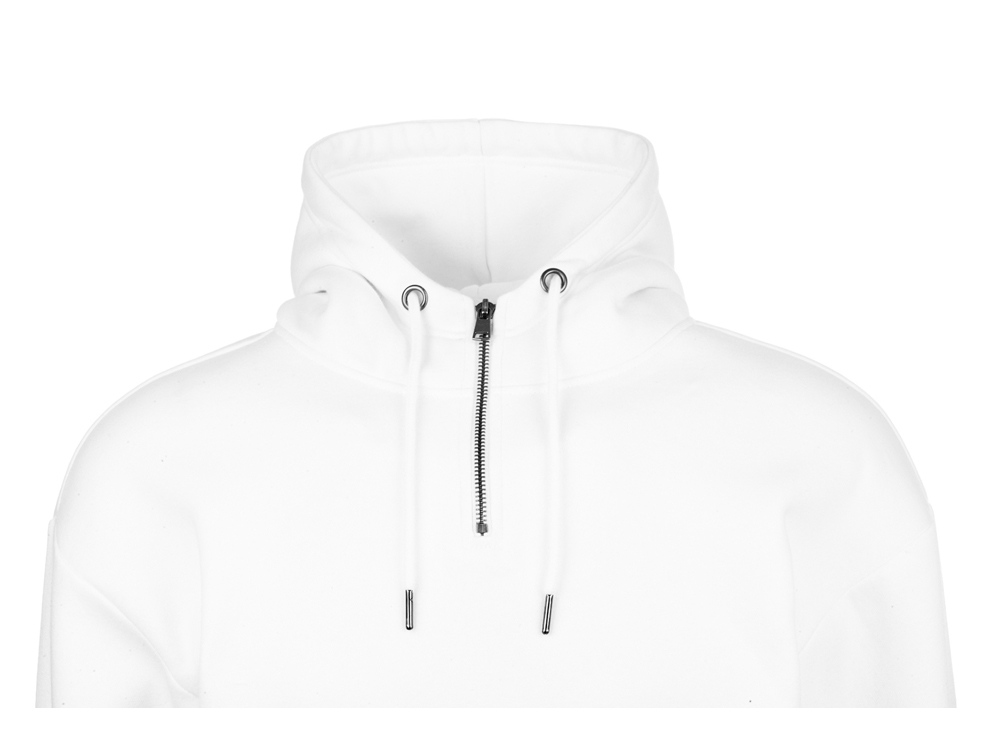 Худи с капюшоном ворот на молнии. Шнур в капюшоне с металлическими наконечниками. Отделка горловины спинки внутри тесьмой, Риб 2х2 по низу изделия и манжетам. Удобный карман кенгуру.