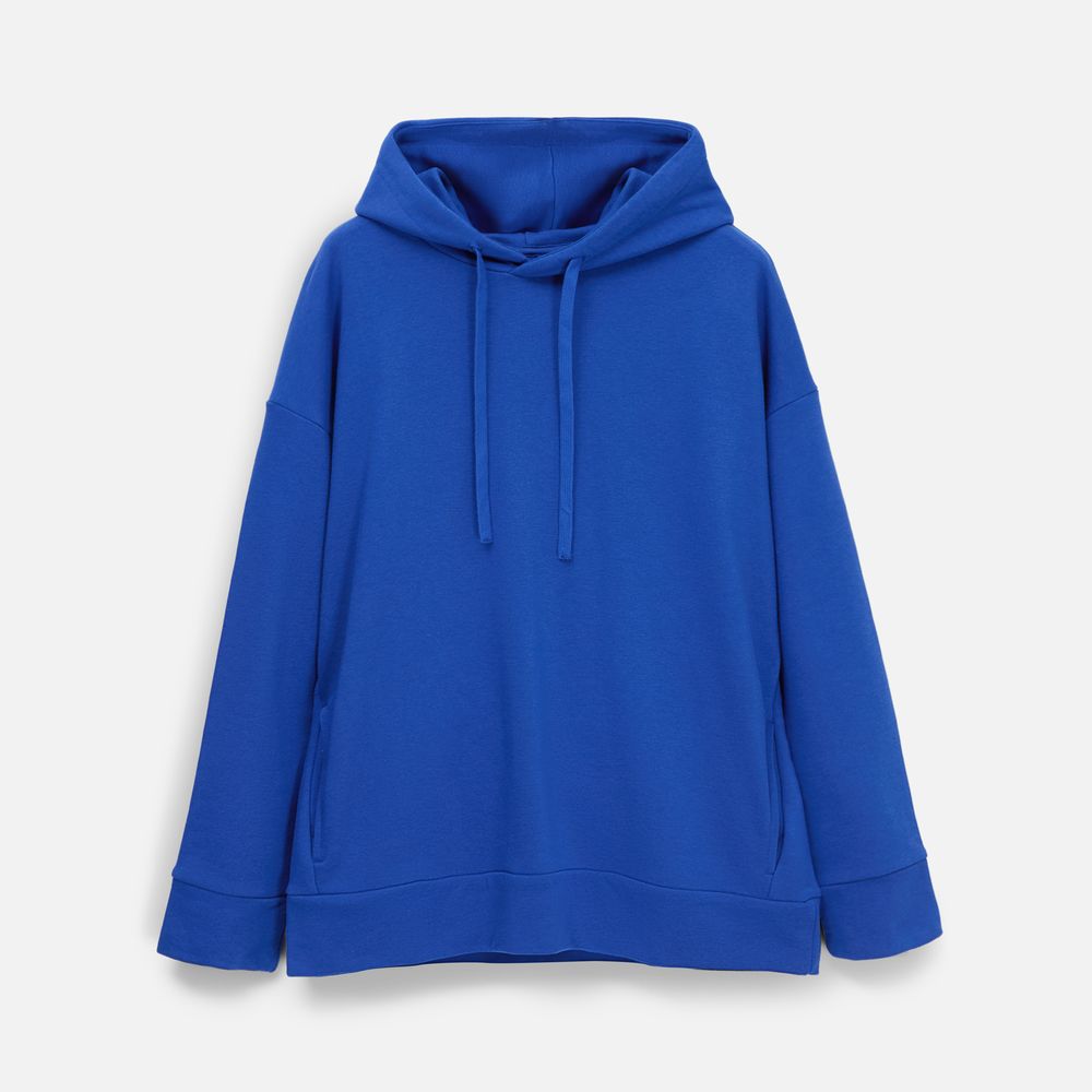 Худи унисекс свободной посадки со спущенным плечом.