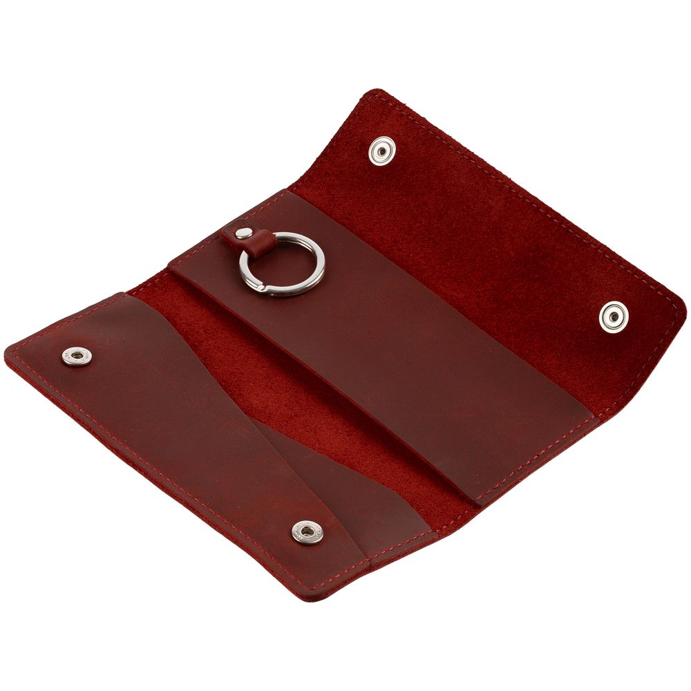 Внутри кольцо для крепления ключей длиной до 12 см. Застегивается на кнопки.