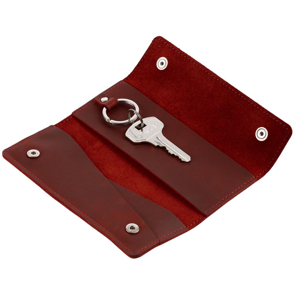 Ключница изготовлена из плотной и прочной натуральной кожи Crazy Horse. На ее поверхности довольно быстро появляется неповторимый рисунок из потертостей и складок — следы времени придают материалу изысканный винтажный вид, делая каждый предмет уникальным в своем роде. Так изделия, подобно благородным напиткам, со временем приобретают лишь большую ценность.