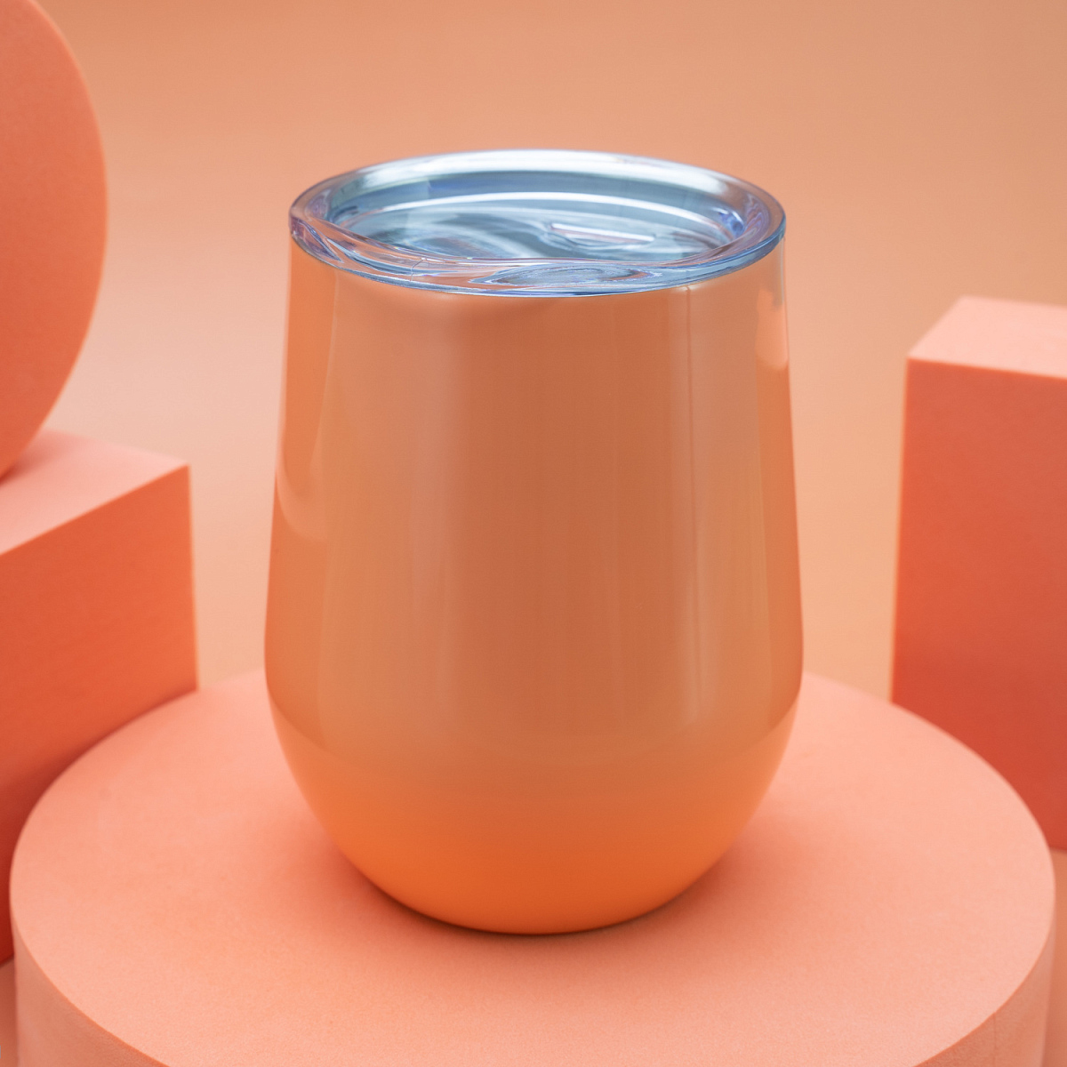 Характерная обтекаемая форма с расширяющейся нижней частью придает коферу оригинальность. Благодаря этой форме, кофер можно использовать для любых напитков: вода, чай, кофе, вино, коктейли - наливайте в кофер все, что захотите, напиток надолго сохранит свою температуру и вкус.