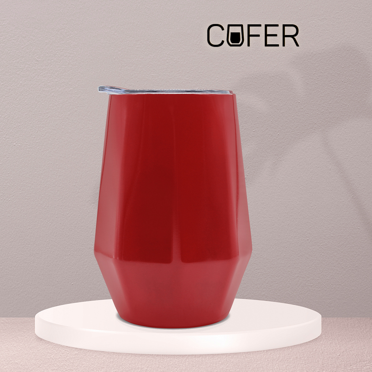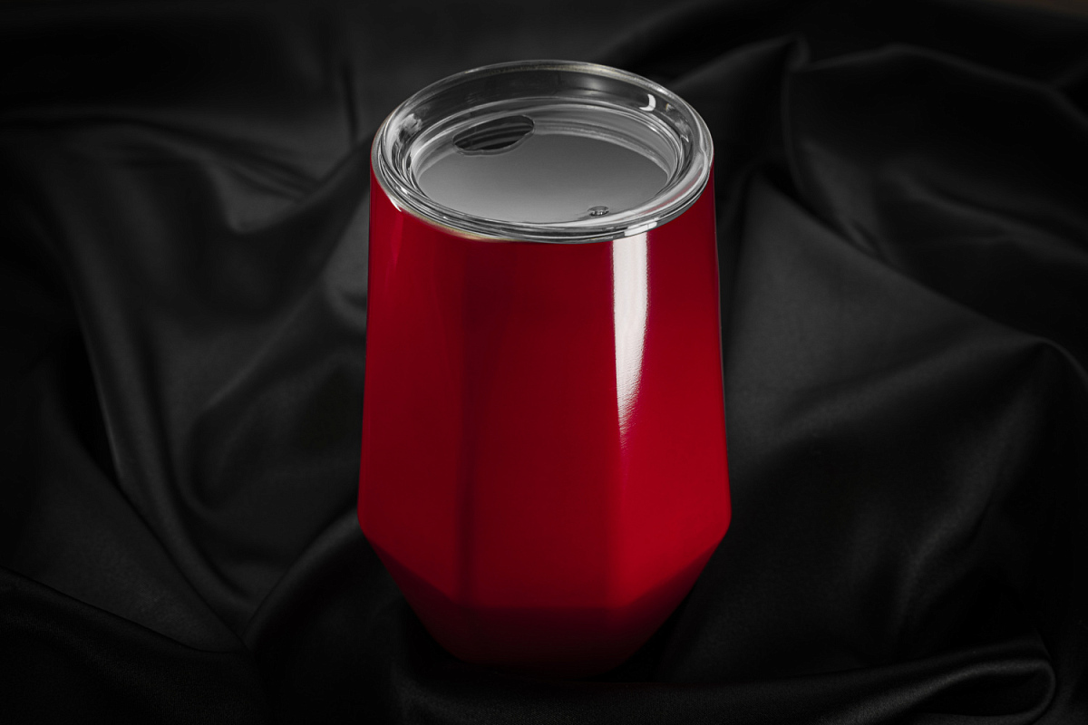 Характерная обтекаемая форма с расширяющейся нижней частью придает коферу оригинальность. Благодаря этой форме, кофер можно использовать для любых напитков: вода, чай, кофе, вино, коктейли - наливайте в кофер все, что захотите, напиток надолго сохранит свою температуру и вкус.