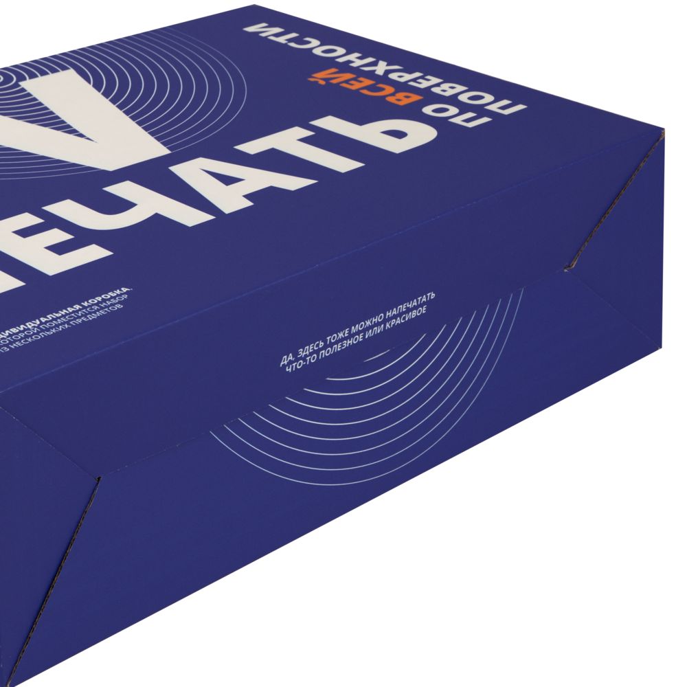 Уникальная возможность оперативно получить коробку с полной запечаткой при небольшом тираже. Коробка изготавливается из микрогофрокартона с белым лайнером на лицевой и изнаночной сторонах.