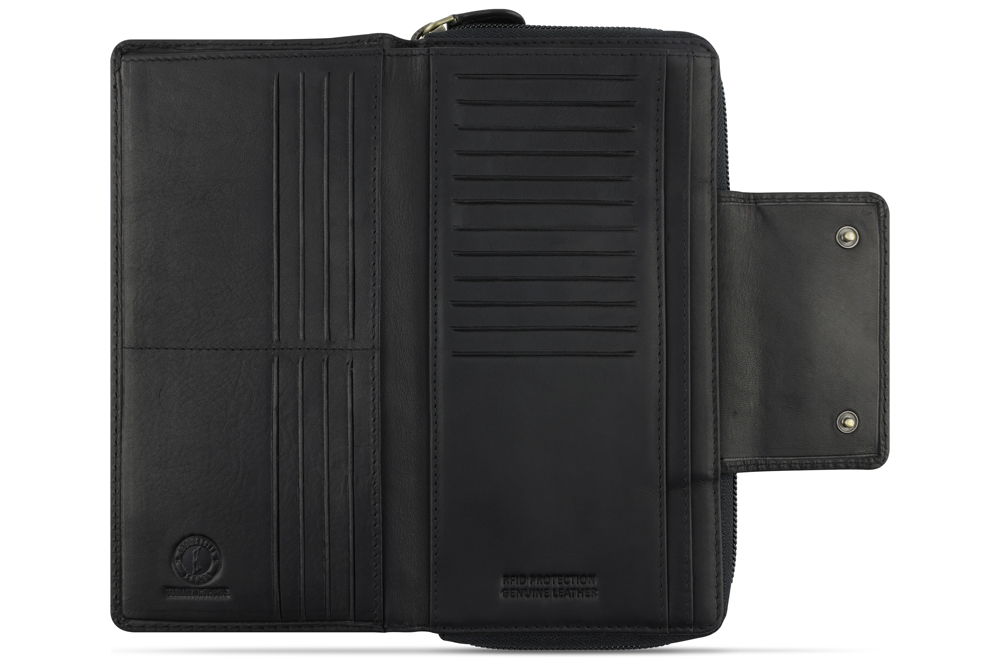 Кошелек KLONDIKE RUSH «Sheila», натуральная кожа в черном цвете, 19 х 11 х 4 см можно заказать в нашей компании по самой доступной цене от 3 070 рублей.