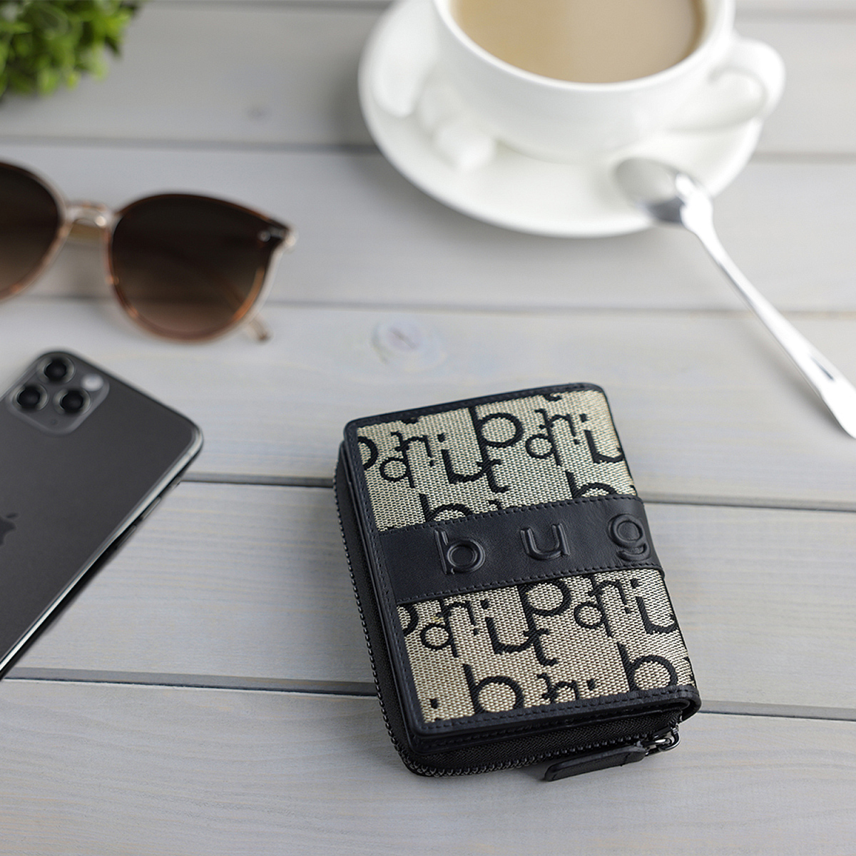 Кошелек женский BUGATTI Elea, бежево-черный цвет, жаккард/воловья кожа/полиэстер, 10х2,5х12 см можно заказать в нашей компании по самой доступной цене от 6 410 рублей.