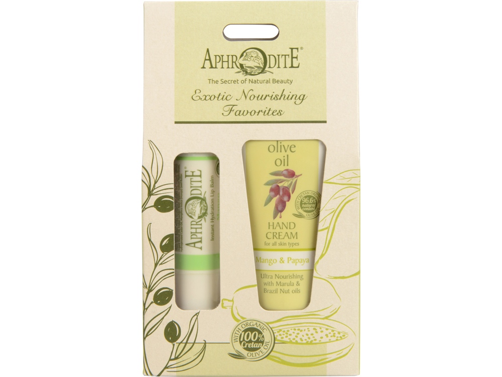 Наша кожа каждый день нуждается в комплексном уходе, включающим в себя питание и увлажнение. И вдвойне приятно, когда забота о красоте и здоровье кожи окутана шлейфом экзотического аромата.В подарочный набор Экзотическое ультрапитание входят средства, необходимые для ежедневного ухода за кожей. Питательный крем для рук с манго и папайя и увлажняющий защитный бальзам для губ с манго, произведенные на основе натурального оливкового масла, делают кожу мягкой и шелковистой.Сделайте подарок близким или возьмите в путешествие набор оливковой косметики с приятными нотами манго и папайя!В набор входит:-Питательный крем для рук с манго и папайя 30мл-Защитный бальзам для губ с манго 4г.
