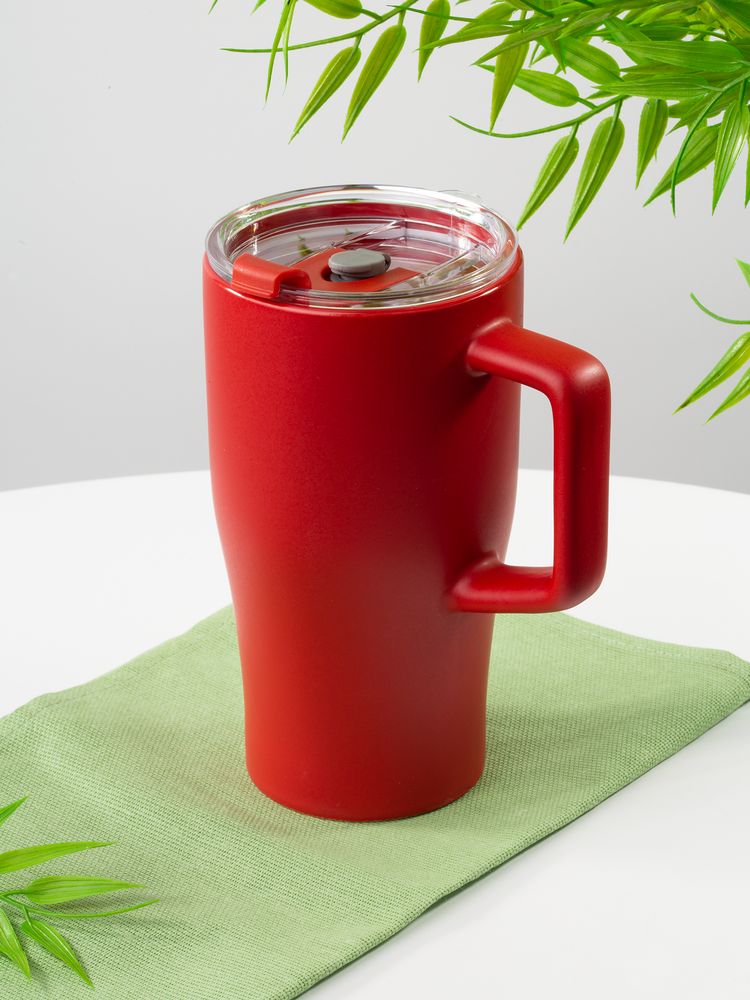 Эргономичная ручка удобно лежит в руке, а прозрачная крышка с отверстием для питья не дает содержимому разлиться на ходу или быстро остыть. Последнее особенно важно с учетом большого объема — 520 мл чая, кофе или какао хватит надолго.