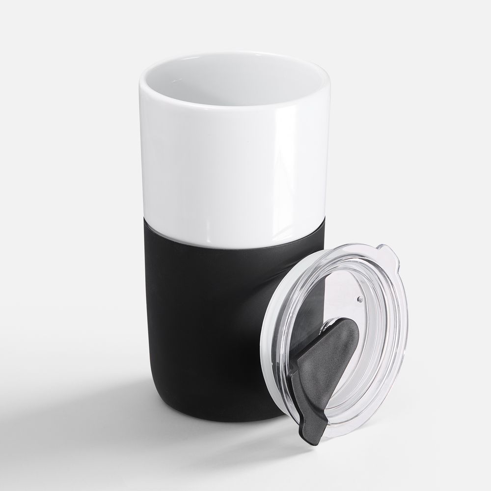 Прочная керамика — и напиток не впитает посторонних запахов и вкусов, силиконовый рукав — и стакан не обожжет руки, плотная крышка — и содержимое не прольется и не остынет слишком быстро.