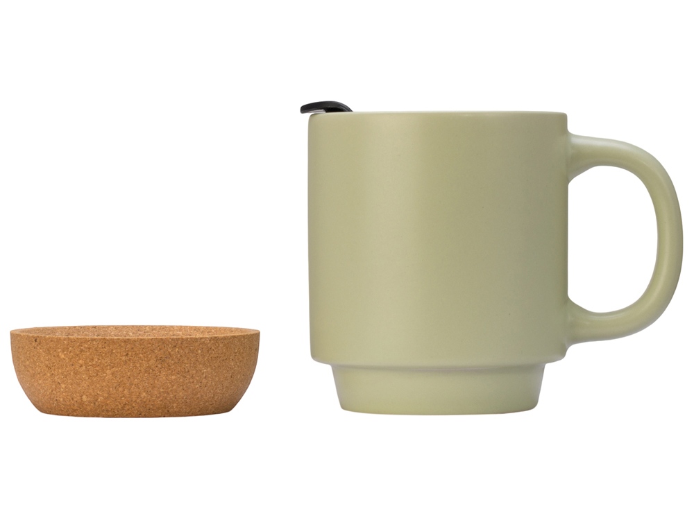 Керамическая кружка Denpasar оснащена пробковым дном, которое позволяет приземлять ее на стол мягко, без скольжения и без стука, а также крышкой, которая позволит вашим напиткам дольше оставаться горячими. А еще помимо практической функции пробковое дно выполняет и эстетическую: смотрите, как красиво сочетается керамика с пробкой, как две текстуры — природная неровная и матовая — взаимодополняют друг друга!