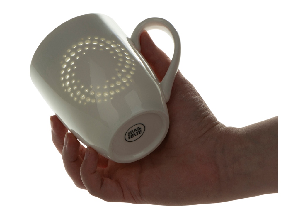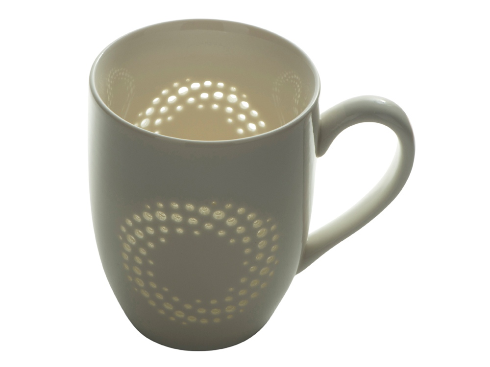 Эффектная особенность этой кружки - узор с эффектом рисового зерна, в котором отверстия в фарфоре заполнены прозрачной глазурью. Это уникальная древнекитайская техника, которая дает и кружке, и напитку буквально светиться изнутри.