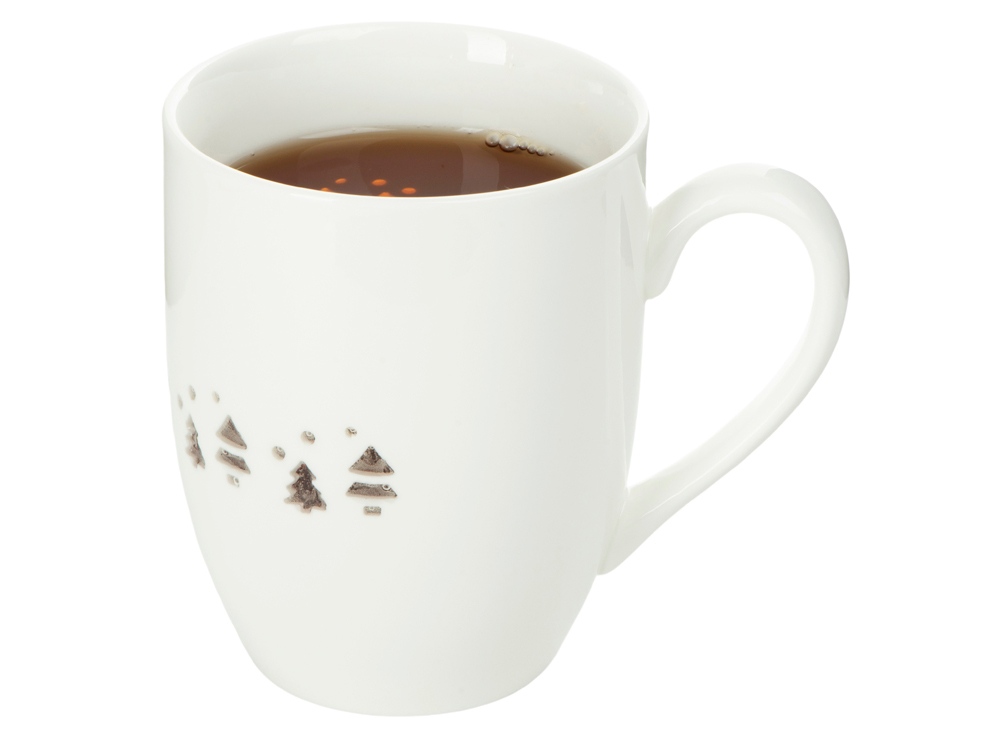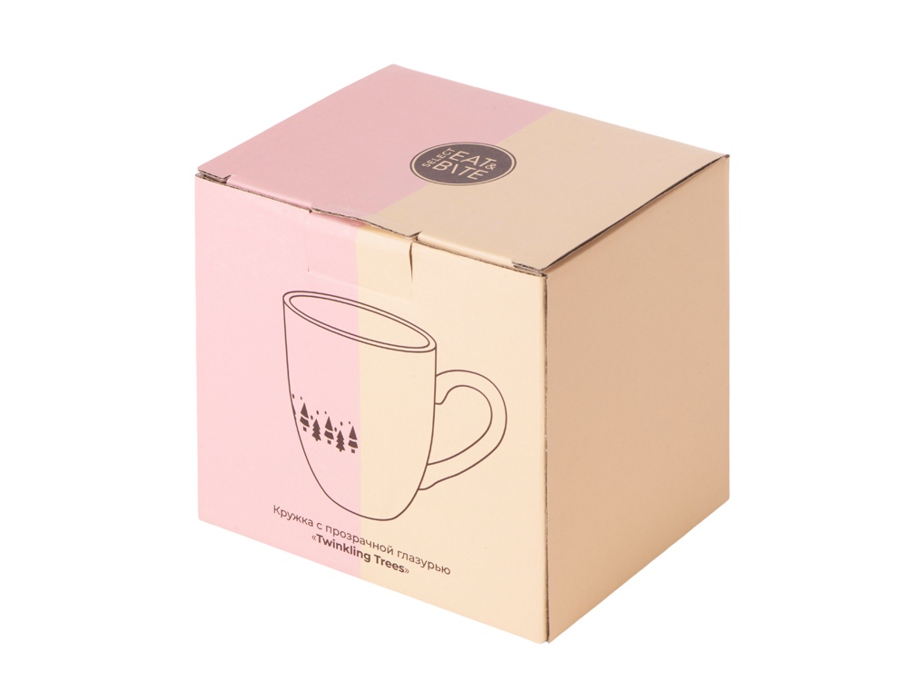 Twinkling Trees станет необычным и запоминающимся новогодним мерчем, благодаря узору на кружке, - елочки и снежинки за счет прозрачности приобретут цвет напитка.