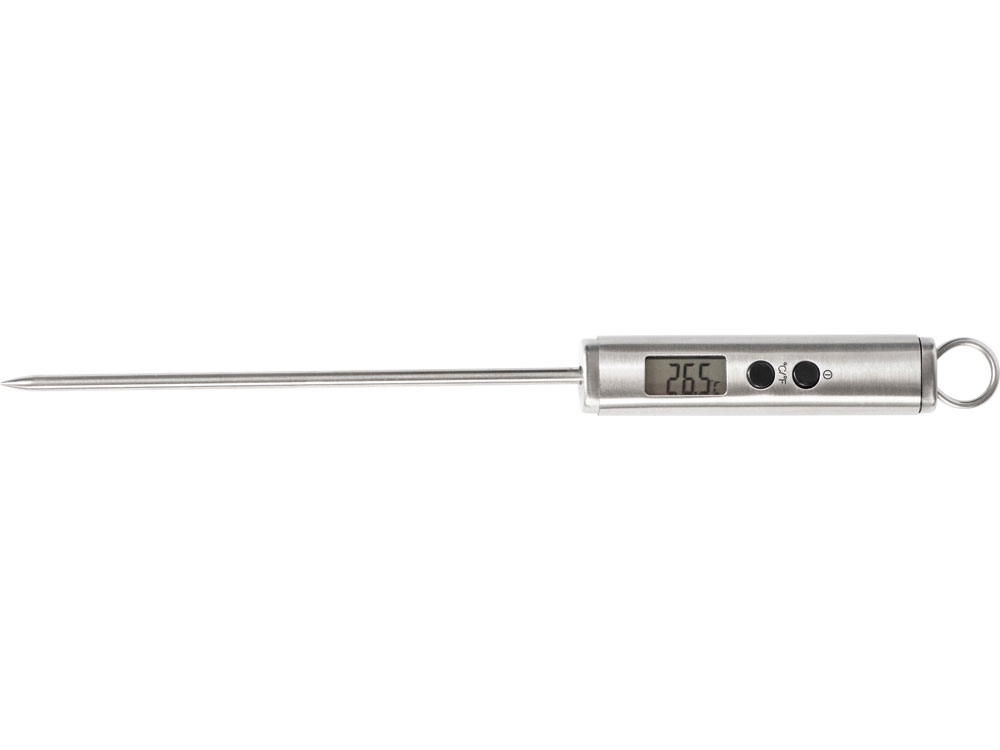 Steak — кулинарный термометр, который не даст вам ошибиться во время готовки! С ним все блюда будут поданы в нужной кондиции, а стейки — прожарены ровно настолько, насколько вам нужно — просто воткните острие термометра в пищу, и на электронном табло появится температура.